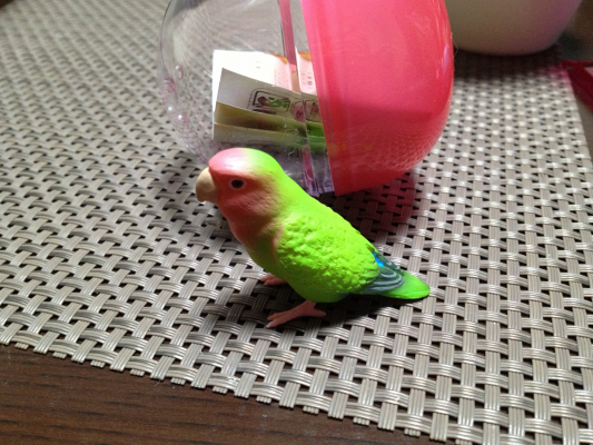リアルでない方のインコガチャ、私はまだ見たことないわ…。