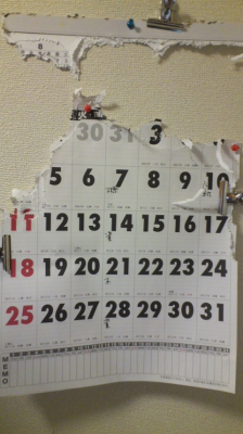 リビングには被害に遭ってもいいカレンダーしか掛けれません(T^T)
