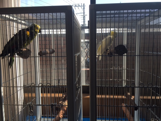 アオちゃんもコバちゃんもケージも綺麗になりました。(*^_^*)