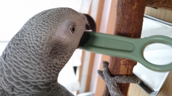 『おはよ』『ノアちゃんこんにちは』『おやっちゅみ』『バイバイ』『おいで』『ちーちゃん』『ええ子やね』『はいっ』は我家のインコ達の共通語。それに、それぞれの鳴真似も!何より困るのはコミドリコンゴウインコの鳴き真似。これだけは止めてほしい…。