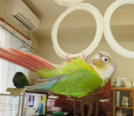 個々に教えても、どれもうまくいかない事が多いのに、最近は何でも1羽が出来る様になると、直ぐに他の仔達にも広まって楽と言えば楽ですが、問題なのは悪さやイタズラもすぐに皆で真似をすること(^^;