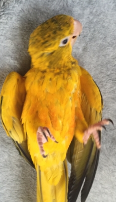 以前、ペットショップに居たニョオウインコも、寝転がっていて、鳥さんが自らそんな事をするんだ!って、その時、初めて知りました(^_-)