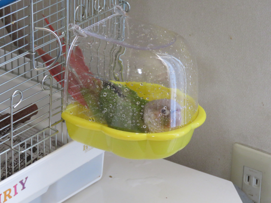 真夏に、雪ちゃんが少しだけ水浴びの真似事?をする程度で、たいようは、水浴びをしようとする気が無さそうです(^_-)