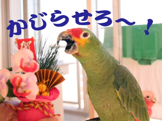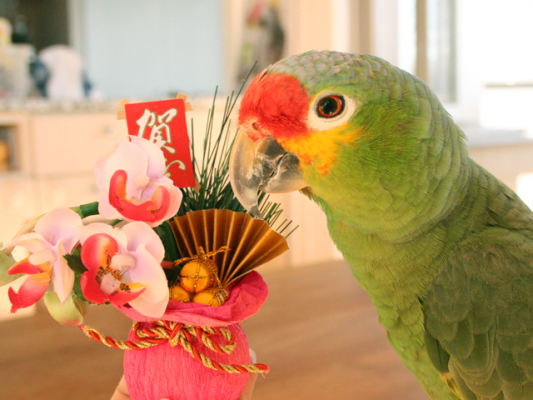 正月用パーカー、笑ってしまいました(´Д` )インコまで付けてスタンばっていたのに宅配なしとは!