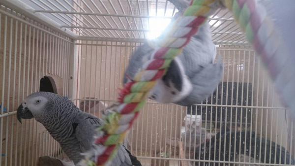 お店のヨウムさんは、お客さんの咳の真似なのかなー