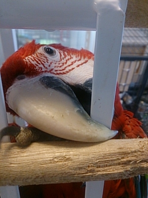 『おはよ』『ノアちゃんこんにちは』『おやっちゅみ』『バイバイ』『おいで』『ちーちゃん』『ええ子やね』『はいっ』は我家のインコ達の共通語。それに、それぞれの鳴真似も!何より困るのはコミドリコンゴウインコの鳴き真似。これだけは止めてほしい…。