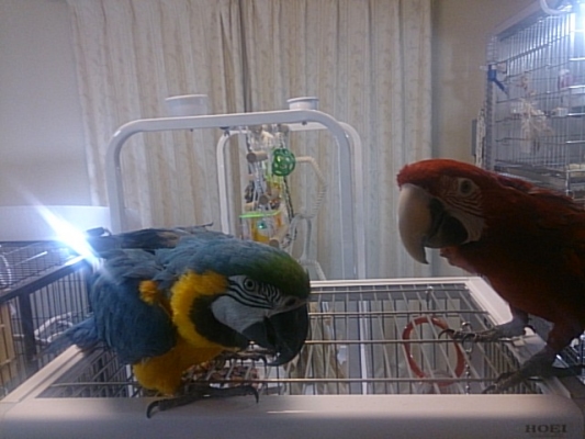 負けず嫌いのインコ達と飼い主のみなさん、こんばんは。