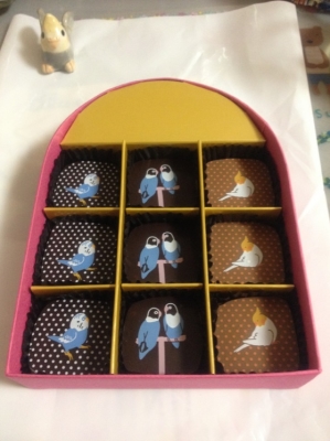 今日はバレンタインですね。寂しい私は自分にバレンタインチョコを買いました。でも鳥友のブログで紹介された可愛いチョコなんですよ〜。食べるのが勿体ないです。でも食べないとダメになる〜。悩ましいチョコです(#^0^#)