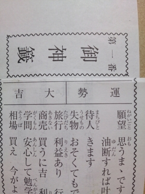 くじ番号、1番の大吉゚+.( *≧∇)ノノノ*.オオォォ☆゚・:*☆