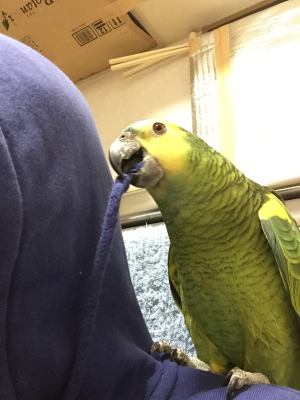 自分ちのヨウム、褒め過ぎたかなぁ…(笑)