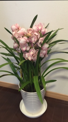 愛妻家のけんちゃんは早速蘭の鉢植えを買って来てプレゼントしました。