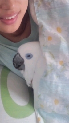 『おはよ』『ノアちゃんこんにちは』『おやっちゅみ』『バイバイ』『おいで』『ちーちゃん』『ええ子やね』『はいっ』は我家のインコ達の共通語。それに、それぞれの鳴真似も!何より困るのはコミドリコンゴウインコの鳴き真似。これだけは止めてほしい…。