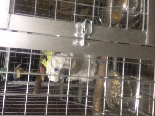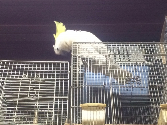 挿し餌をして育てたキバタンです、頭が良いのか、連日