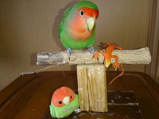 我家のインコ達、種類も性別もサイズもバラバラ…。なのに、常にお互いに妙なライバル心がある様で(^^)