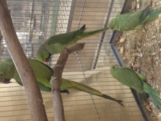 『おはよ』『ノアちゃんこんにちは』『おやっちゅみ』『バイバイ』『おいで』『ちーちゃん』『ええ子やね』『はいっ』は我家のインコ達の共通語。それに、それぞれの鳴真似も!何より困るのはコミドリコンゴウインコの鳴き真似。これだけは止めてほしい…。