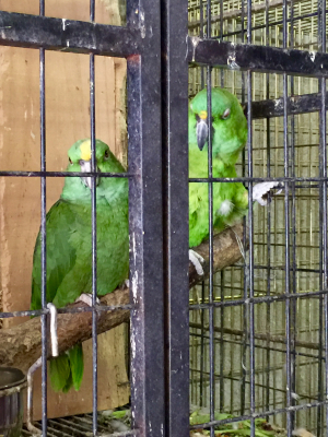 ヘトヘトの飼い主とは違って、元気一杯のインコ達。