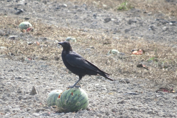 仕事に出ようと表に出ると、数年来の付き合いのあるハシボソガラス夫婦が来て私を?餌を?待っていました(^O^)私はカラス夫婦に手を振り、早速、今朝購入していた唐揚げをあげました、カラスは脚で唐揚げを抑えて食べると2個を上手にくわえて、私には挨拶なしで飛んで行きました(笑)