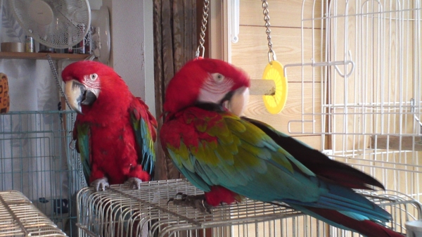 ベニコンゴウ4羽、ルリコンゴウ1羽、ハルクイン1羽、ヒメコンゴウ1羽、ヨウム1羽、キエリボウシ1羽、オカメ1羽…。