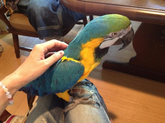 初対面のコンゴウインコを自由自在に操ってたわ!