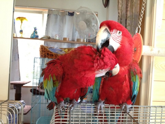 >ベニコンゴウの仲良しペアは、どちらもオスか?疑惑が浮上しているようで…。