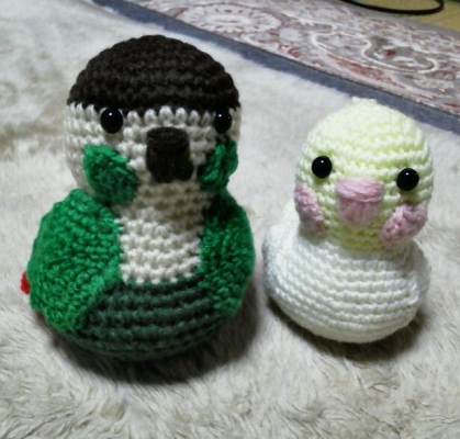 我家のインコ達、種類も性別もサイズもバラバラ…。なのに、常にお互いに妙なライバル心がある様で(^^)