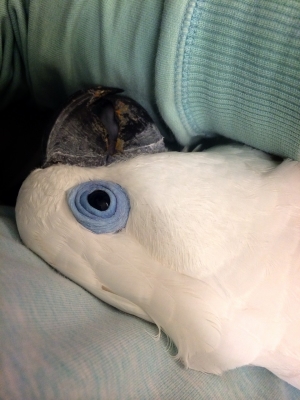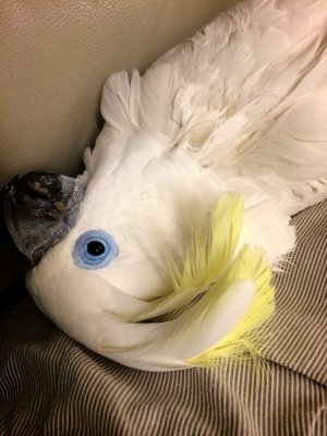 ヒロシの寝ころんでる姿貼っときます、もう一枚は冠羽の黄色がわかり安い画像です