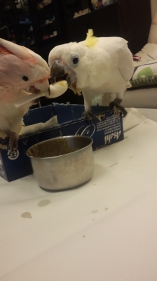 昨夜の画像動画で無いからわからないけど、クックちゃんがスプーンで遊んでたらキッキちゃんがカッツカッと鳴きながらスプーンで食べてたんよ〜