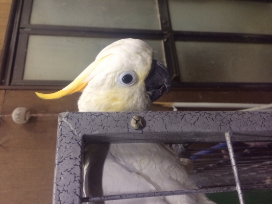 お迎え翌日に唇に穴開けた鳥も毎日点目で甘えます。