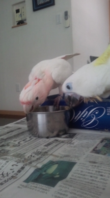 個々に教えても、どれもうまくいかない事が多いのに、最近は何でも1羽が出来る様になると、直ぐに他の仔達にも広まって楽と言えば楽ですが、問題なのは悪さやイタズラもすぐに皆で真似をすること(^^;