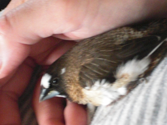 >錦華鳥ペアから飼育放棄された子と文鳥の雛小桜インコ雛を差し餌してます。