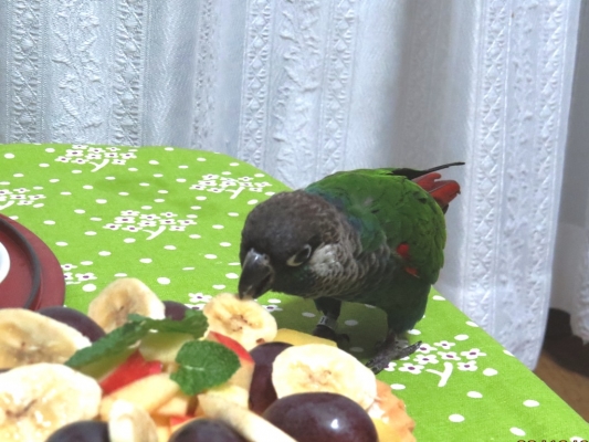 『おはよ』『ノアちゃんこんにちは』『おやっちゅみ』『バイバイ』『おいで』『ちーちゃん』『ええ子やね』『はいっ』は我家のインコ達の共通語。それに、それぞれの鳴真似も!何より困るのはコミドリコンゴウインコの鳴き真似。これだけは止めてほしい…。