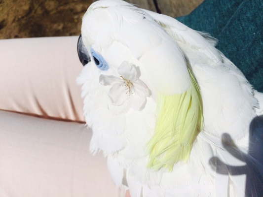放鳥時、呼んでも来ない事が多い仔も、一羽を肩に乗せたりカキカキしてると、皆バサバサ寄ってきて我も我もと肩に登って来たり、3,4羽の頭がにょきにょき出てきたり…。