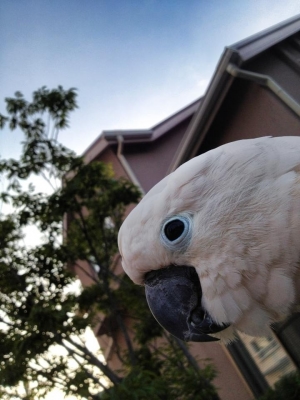 『おはよ』『ノアちゃんこんにちは』『おやっちゅみ』『バイバイ』『おいで』『ちーちゃん』『ええ子やね』『はいっ』は我家のインコ達の共通語。それに、それぞれの鳴真似も!何より困るのはコミドリコンゴウインコの鳴き真似。これだけは止めてほしい…。