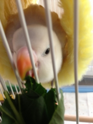 今年11月28日に2歳になる白ボタンインコちゃんと