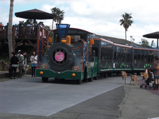 お目当ては、コンゴウインコとのふれあいタイムだったのですが、まだ時間があったので、先に「ケニア号」という車両がつながった列車タイプのサファリバス?に乗って、草食動物ゾーンや肉食動物ゾーンを見て回りました。