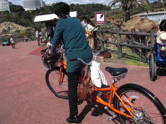 本来カップルが乗るべき二人乗り自転車に、いい年したおばさんと若い女の子が乗って、ひょろひょろところびそうになりながらこいでいたんだから、そばから見たらおかしかったと思います(笑)