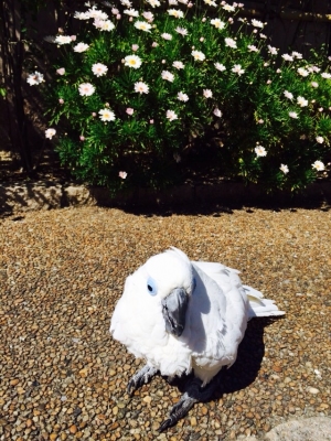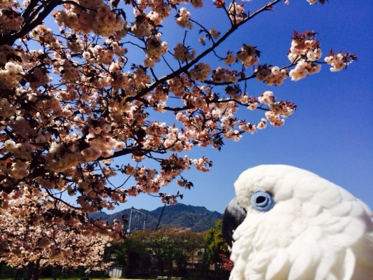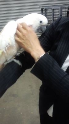 しかしいつも何のためらいもなく、白色オウムそれも白粉の王者?オオバタンを黒のスーツ姿で平気で抱っこするあ〜ちゃんには脱帽です