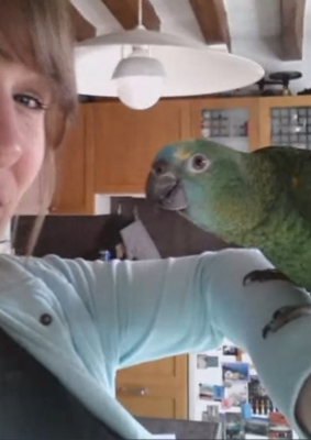 『おはよ』『ノアちゃんこんにちは』『おやっちゅみ』『バイバイ』『おいで』『ちーちゃん』『ええ子やね』『はいっ』は我家のインコ達の共通語。それに、それぞれの鳴真似も!何より困るのはコミドリコンゴウインコの鳴き真似。これだけは止めてほしい…。