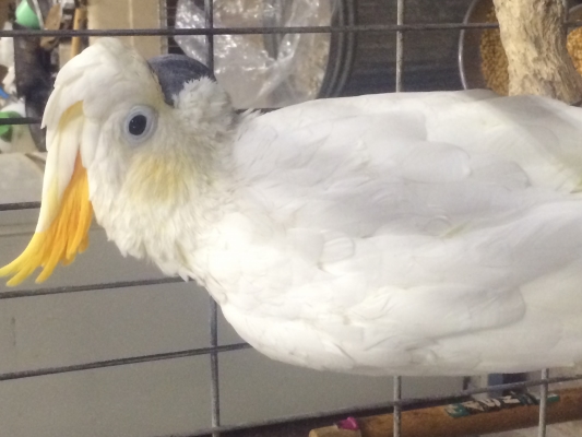 オウムが窓ガラスに接触すると、(笑)白粉