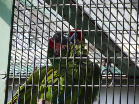 >アカ&ミドリ&アオキ&スミレコンゴウインコの舎に巣箱が設置されていて、スミレコンゴウインコ以外は、巣箱に出入りしているようで、♂が入り口で見張り番したりしていました♪