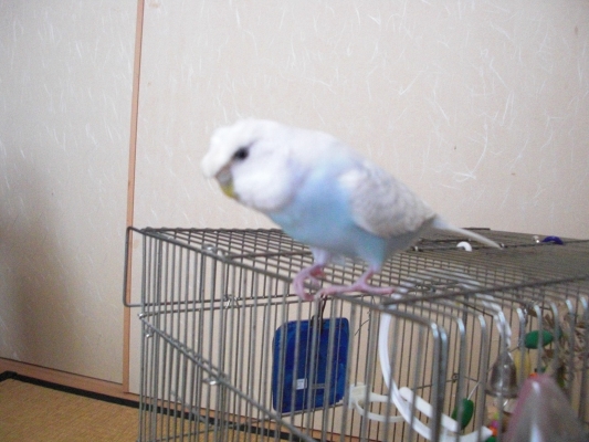 あーちゃん、朝から笑わしてくれますね、ケージを開けるとステップアップ処ではない(笑) 今週辺りから英才教育に取り掛かるの…?