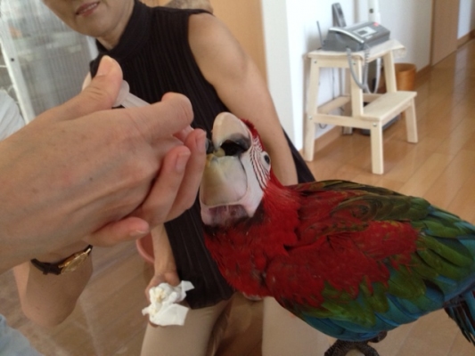 特に今は、黒いしインコ達の爪痕だらけの腕をしています。