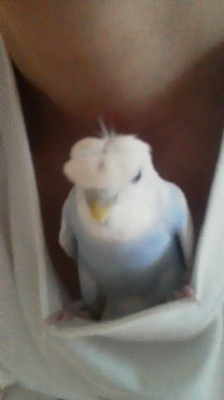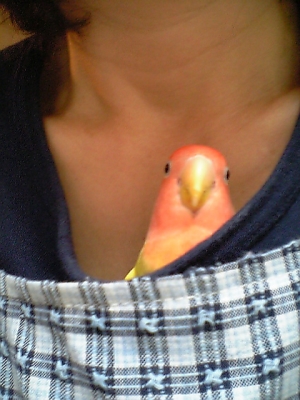 放鳥時、呼んでも来ない事が多い仔も、一羽を肩に乗せたりカキカキしてると、皆バサバサ寄ってきて我も我もと肩に登って来たり、3,4羽の頭がにょきにょき出てきたり…。