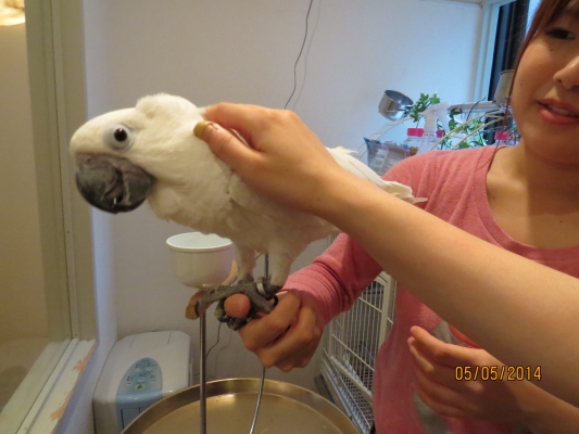 >あと1羽オキナインコもフライトスーツ着て可愛がって頂きました。