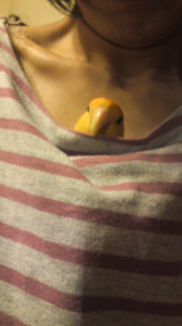 放鳥時、呼んでも来ない事が多い仔も、一羽を肩に乗せたりカキカキしてると、皆バサバサ寄ってきて我も我もと肩に登って来たり、3,4羽の頭がにょきにょき出てきたり…。