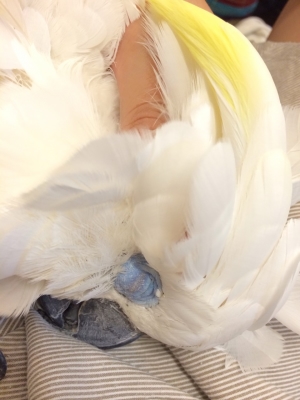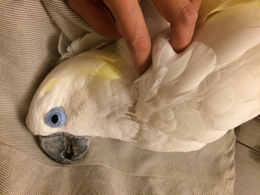 ココ(アオメキバタン)も毛かじりしますが。