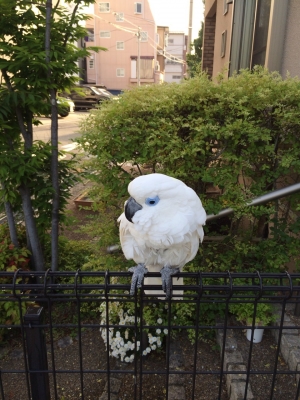 『おはよ』『ノアちゃんこんにちは』『おやっちゅみ』『バイバイ』『おいで』『ちーちゃん』『ええ子やね』『はいっ』は我家のインコ達の共通語。それに、それぞれの鳴真似も!何より困るのはコミドリコンゴウインコの鳴き真似。これだけは止めてほしい…。