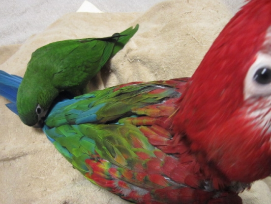 きいママさんもお仕事中には熱中症に気をつけてくださいね!あーちゃんは大丈夫やろ!なんか…鉄の女ってイメージがあるので(汗)(-_-; パンドラとハズ君…キクスイカレンダーに応募すれば?みなさんも言われますが本当に日々綺麗になって来ましたね、しかもデカイ!コミドリとベニのツーショットなんて中々見れないですよね?我が家はここ数日ルリコンゴウの様子が…どうも抱卵を始めたみたい(-_-;このクソ暑いのに!