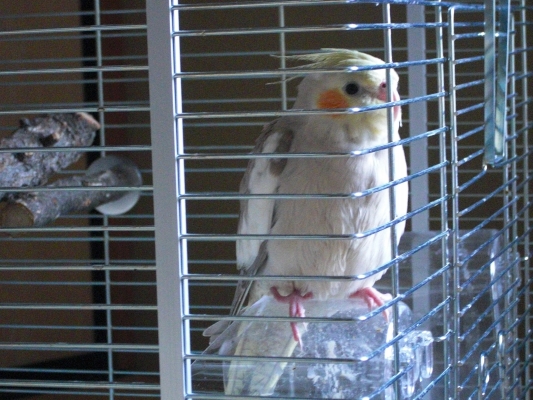 ケージ内でパニック状態なら羽根は抜けるわ、あちこちに