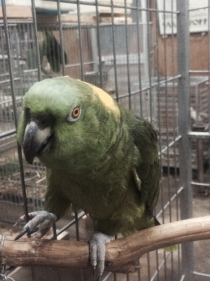 >ところで『目指せ!正統派ペア!!』方針にのっとり、昨日より同居を開始したコミドリコンゴウインコペア、取りあえず何とか流血騒ぎもなく、一緒のケージに収まっております。